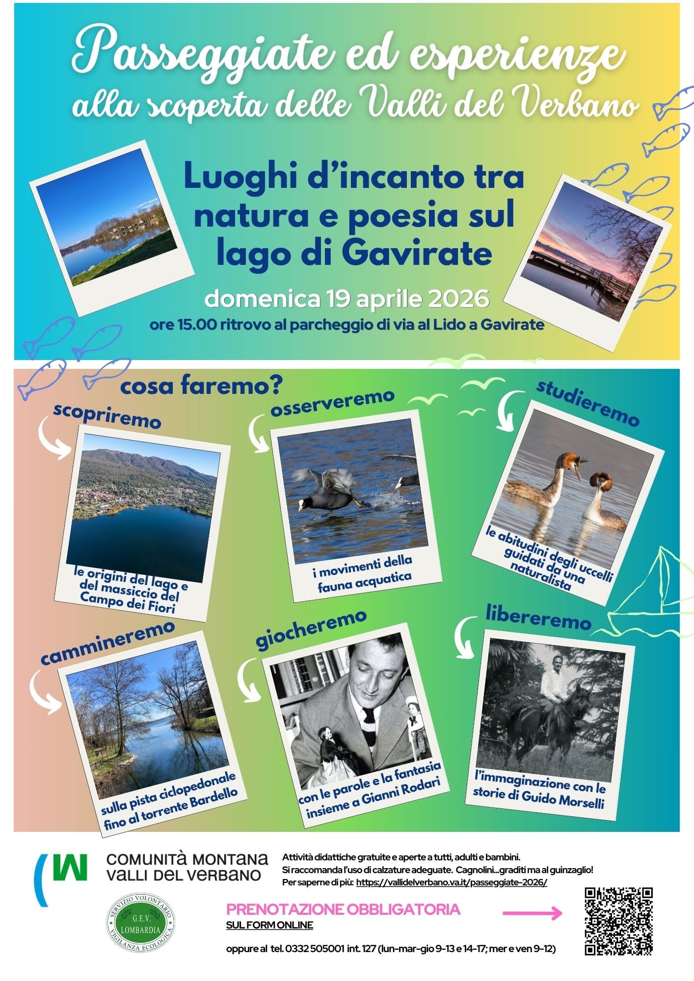 Domenica 19 aprile è in programma un nuovo appuntamento con l’edizione primaverile del 2026 delle “Passeggiate ed esperienze alla scoperta delle Valli del Verbano”: la meta sarà Gavirate, con un’iniziativa dal titolo “Luoghi d’incanto tra natura e poesia”, pensata per valorizzare il territorio attraverso un’esperienza coinvolgente e adatta a grandi e piccini.